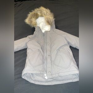 3T Old Navy gray winter coat with a furry hood.