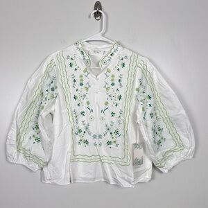 HYACINTH HOUSE Green Embroidery Erin Blouse