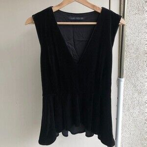 Cute velvet top with a deep front cut. Can fit size S as well. Great condition.