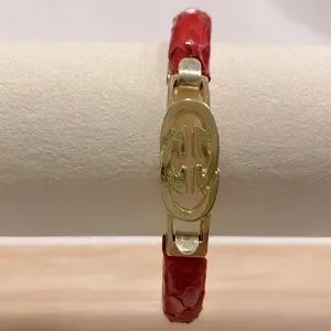 A beautiful gold plated Italian red snakeskin bracelet. Bracelet measures approximately 8”. Rarely worn; like new.