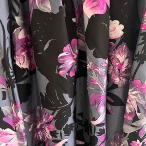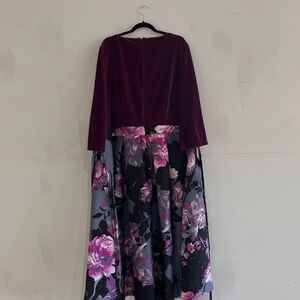 Dark purple velvet top with a floral print skirt
