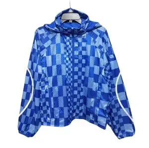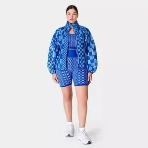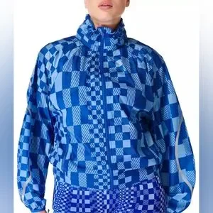 Sweaty Betty Blue Checkered Graphic Pack Away Jacket Women's Size Medium NWT
