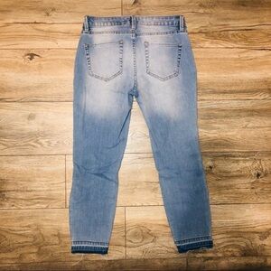 - Light wash jeans with the released hem