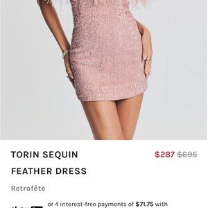 Retrofete Torin Sequin Feather Dress Dusty Peach M