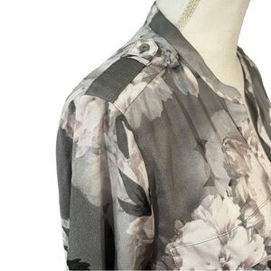 Calvin KleinXL grey button up blouse with pink and white floral design EUC