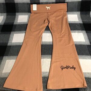 VS PINK TOFFEE FOLDOVER FLARE COTTON LEGGINGS LIMITED EDITION