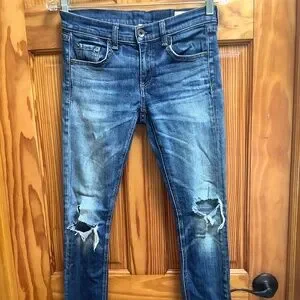 The low-rise makes a comeback. Dre is slim (not skinny), straight cut and sits below the natural waist. Julienne is a vintage stretch denim in a crisp, clean mid indigo wash. Specialty hem and a zip fly.