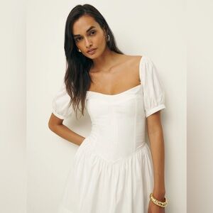 NEW Reformation Calie Mini Short Sleeve Dress Stretch Cotton White | size 4