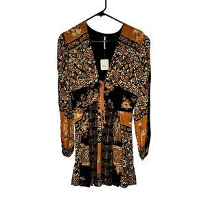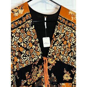New Free People Floral Boho Dress Long Sleeve Size S Black Orange