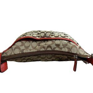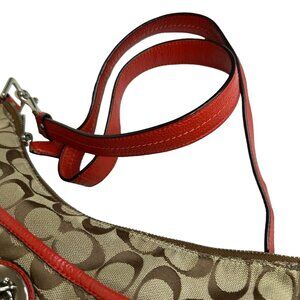 Auth Used COACH Crossbody Shoulder Hobo Bag Canvas Leather Outer Pocket Logo C