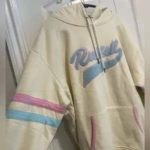 RUSSELL SCRIPT HOODIE Boyfriend Fit VINTAGE WHITE NWT