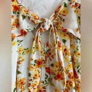 Like new condition size M orange, yellow, and white floral dress from Lulu’s. This dress has a square neckline and a tie in the back so you can cinch in the waist a bit. I’ve had this for a couple years and have only worn it two times!