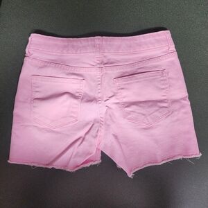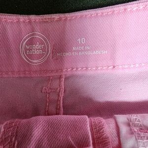 NWOT Girls Wonder Nation Pink in color Jean Shorts. adjustable waist, 2 front pockets, 2 back pockets with cut off look hemmed legs. Girls size 10.