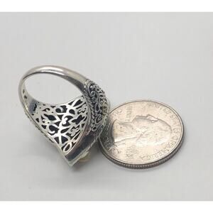 18k Gold and Sterling Silver Ring 925 Size 9.5 Bali Opal Scroll M ID signed