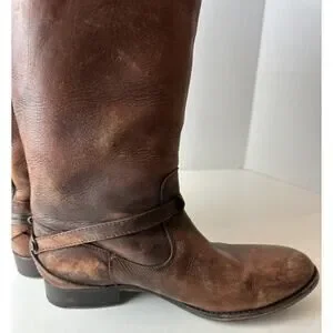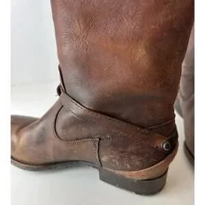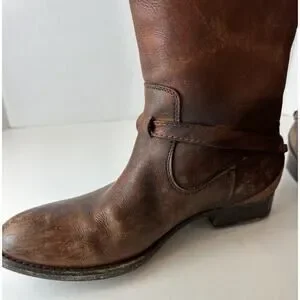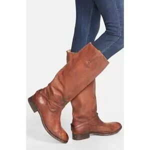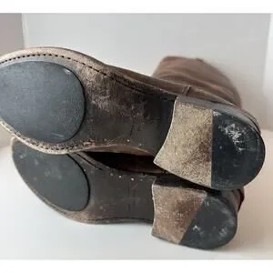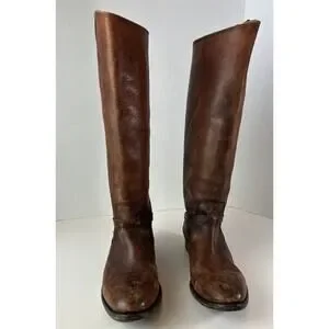 FRYE Lindsay Plate Distressed Leather Tall Riding Boots 76975 Brown Size 7 B