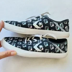 Converse Hello Kitty Print Collab Chuck Taylor Low Sneakers Black Cute Cat 7
