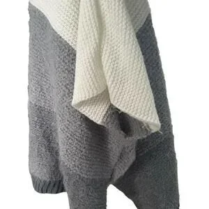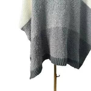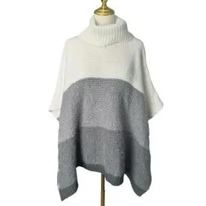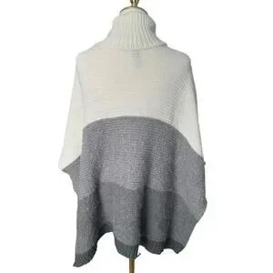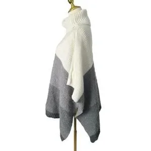 Vince Camuto Colorblock Turtleneck Sweater Grey White Poncho Shrug Thick Warm OS