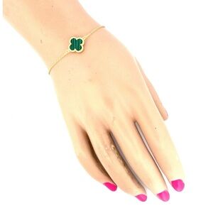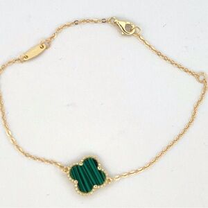 18k Gold Plated sterling silver Green Malachite Clover Bracelet