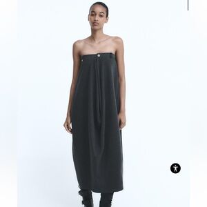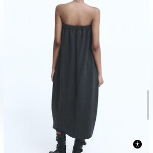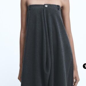 Zara Ruched Strapless Dress Grey NWT Elastic Band For Comfort
