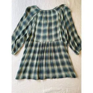 Anthropologie Maeve Women's Small Plaid Tunic Top 100% Rayon Button Front