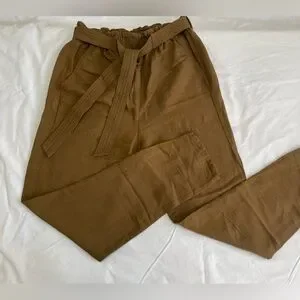 Slightly cropped paper-bag tie waist pants. Elasticated waist with pockets and loose fit. Never worn and from a non-smoking and pet free household. Made from 59% linen and 41% viscose.