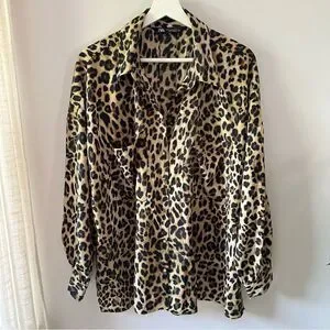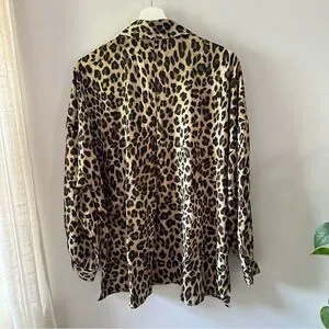 Zara oversized leopard print button up blouse.