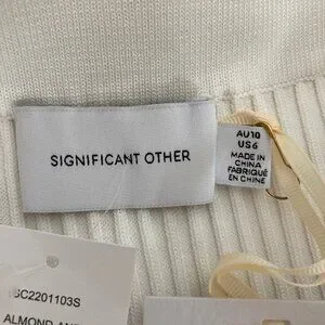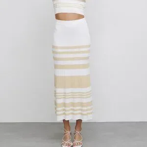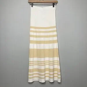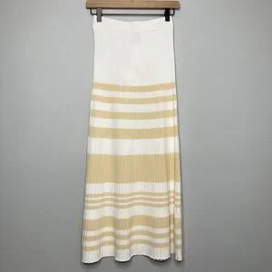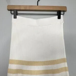 Significant Other Sage Striped Rib Knit Midi Skirt Womens 6 White Cream Beachy