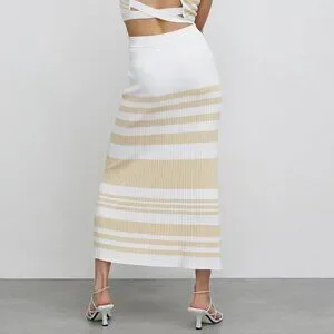 Significant Other Sage Striped Rib Knit Midi Skirt in Almond and Cream Stripe. Size 6.