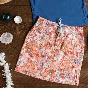 New w/tags, Pinwheel (coral, peach, aqua, teal, cream) pattern sport skirt cut by RipSkirt Hawaii. This is a size Medium 8-10. This skirt is made of a high-quality yet lightweight, quick-dry boardshort material. This skirt goes the distance from brunch to beach to errands to dinner. It packs light, dries fast if you need to wash it, making it the perfect travel companion. Smoke-free, pet-free home.