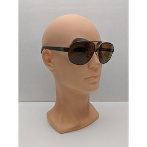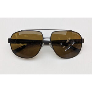 Frame is in almost excellent condition. Have some light scratches and a few tiny scratches on the color coating. Almost not noticeable during wear. Lenses are in good condition. Have some visible clusters of small hairline scratches which are slightly noticeable in use. Please check pictures. Lens width: 60mm Bridge size: 13mm Temples size: 140mm Frame and Temples color: Gunmetal, Matte. Lenses color: Brown, Polarized.