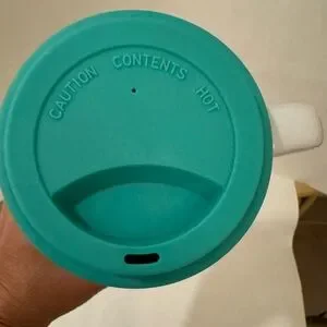 White mug, several shades of green deep pink rose colors the posh color chart needs to be updated, but I am just trying to do my best to describe the mug for you