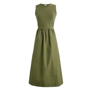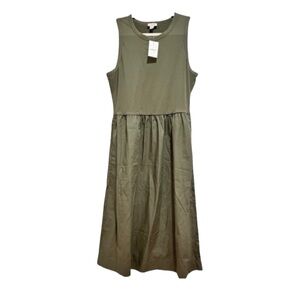 J Crew Olive Green Sleeveless Mixed Knit Midi Womens Size M Pockets Cotton