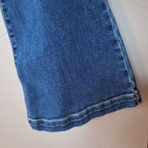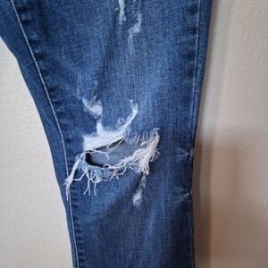 Judy Blue Trouser Flare Jeans. Medium wash. Button fly closure. Mid rise. Trouser style hem. Ripped/distressed. 5 pocket design. Like new. Stretchy. Womens size 9/29 Waist flat lay 15" Rise 10" Inseam 33" measurements are approximate