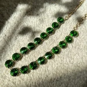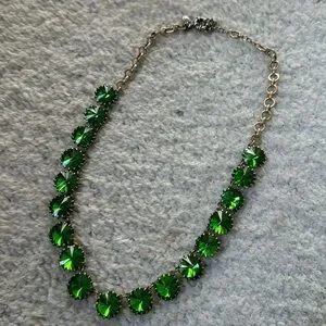 Harder to find vintage green rivoli necklace. Some tarnishing is on the chain and the underside.