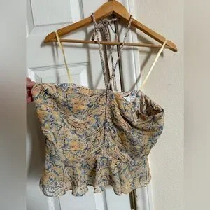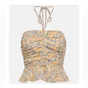 Veronica Beard Womens Arienne Yellow Blue Paisley Halter Top Sz 10 Peplum hem