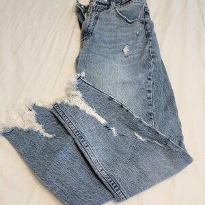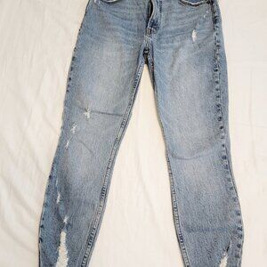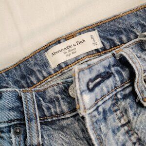 Abercrombie The Skinny High Rise jeans Size 25 Short in a medium wash with distressing. Gently warn.