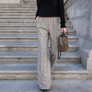 Voluminous trousers in a yarn-dyed check Wide Leg silhouette with pleats. A classic timeless staple!