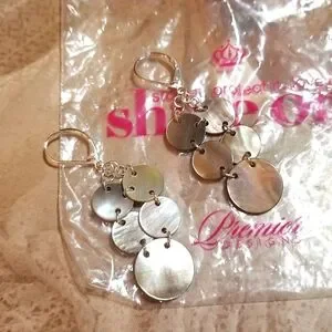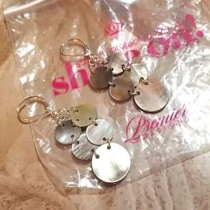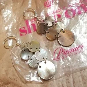 NEW Premier Designs Mother of Pearl Disc Dangle Earrings