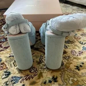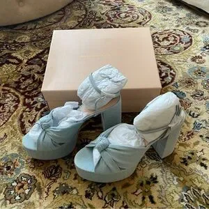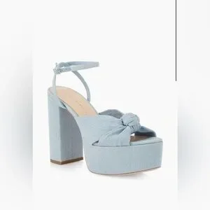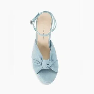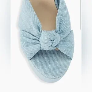 The Roz sandals from Loeffler Randall are crafted of denim with a knotted strap and a platform sole.