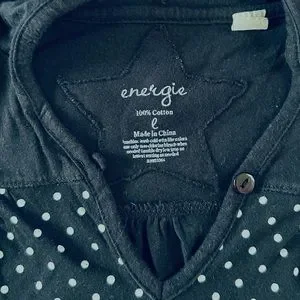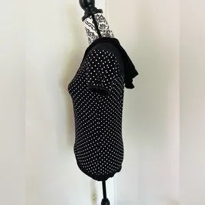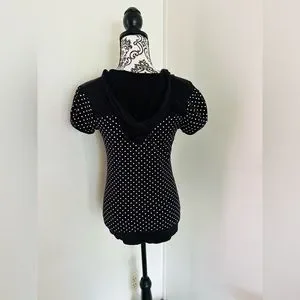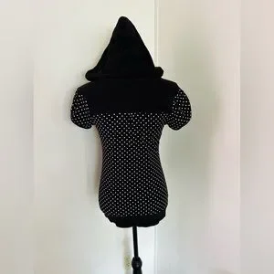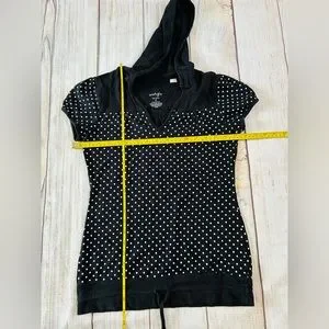 Energie Women’s Black & White Polka Dot Drawstring V-Neck Hooded T-Shirt