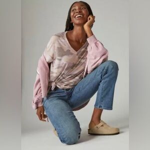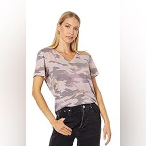 Lucky Brand Woman’s Camo Printed Burnout V-Neck Tee