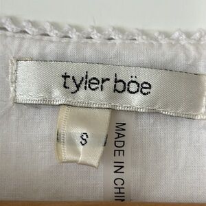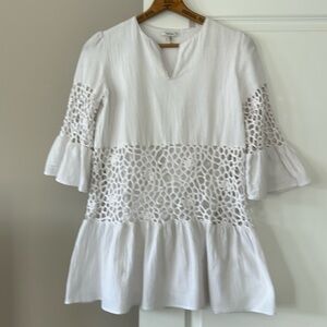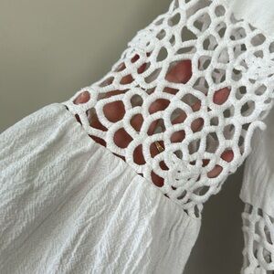 Tyler Boe Izzy Eyelet Topper White Dress w Bell Sleeves & Crochet Details