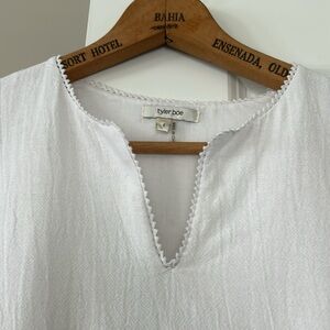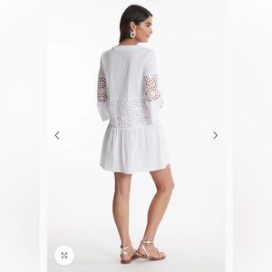 Tyler Boe Izzy Eyelet Topper Crochet Dress w Bell Sleeves Notch Neck White