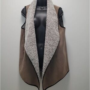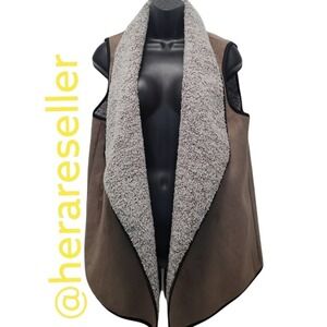 Talbots Brown Faux Sherpa Suede Vest Size Medium Petite