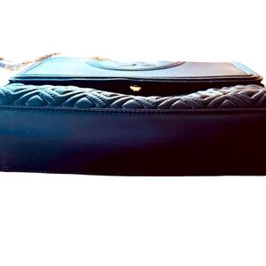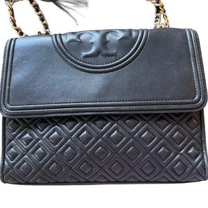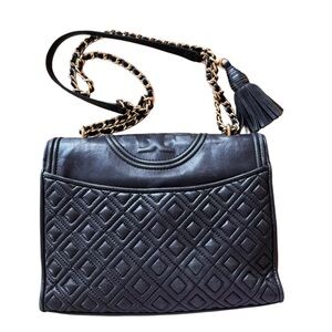 Black Tory Burch Fleming Convertible Bag Quilted Leather Crossbody or Shoulder Bag.