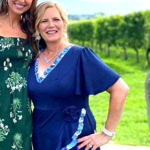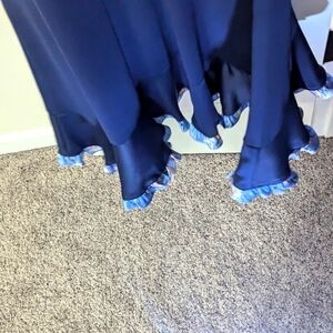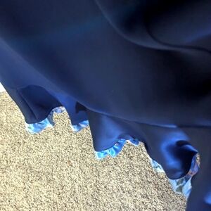 Unique and one of a kind - Courtier designer has re-created a basic David's Bridal Satin gown, enhanced with printed floral satin ruffles, with V-neck, stretchy satin, comfortable, flowing, and stunning, receive many complements ♥️🌻🥂 Mother of the Groom - As an additional bonus 🌟 estimated 2 yards of extra printed fabric if you would like to get even more creative with this dress.