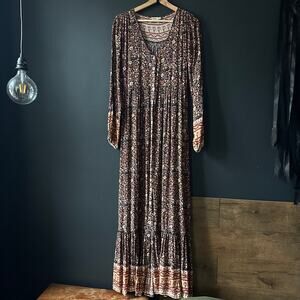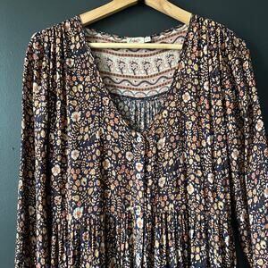A prairie breeze wafts through this free-spirited maxi dress, awash in tiny blooms and fitted to flow.