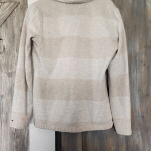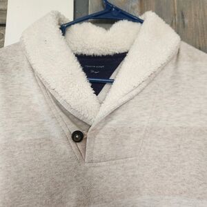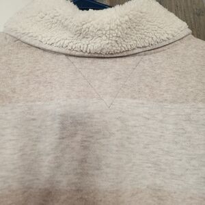 this shirt is soft especially with the sherpa lining in the neck area..this will definitely be a warm shirt for those fall days !! it has a cute button detail and tones with an extra button