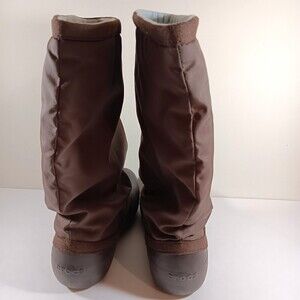 Crocs Claire Brown Mid Calf Pull On Insulated Textile Outdoors Winter Rain Snow Boots