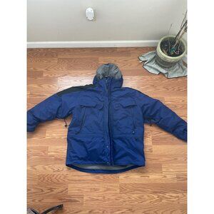 This jacket is very warm and will keep you warm during the winter. It is very heavy and is insulated to keep the heat from your body within. Has multiple pockets and a hoodie as well. Is adjustable